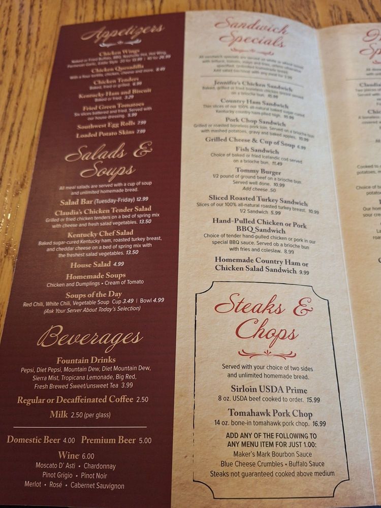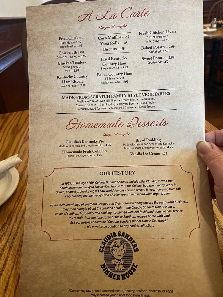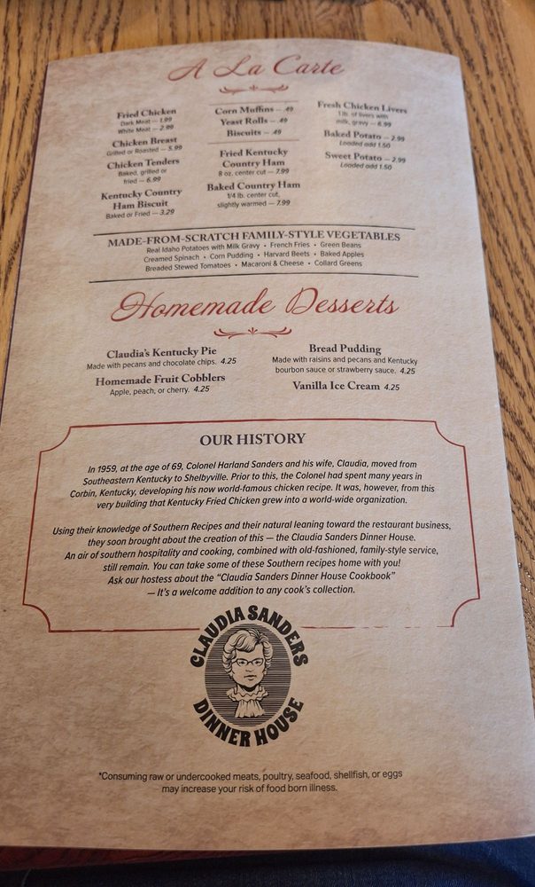 Introducing the Claudia Sanders Dinner House, a Southern-style restaurant located in Shelbyville, KY. This charming venue offers a range of amenities, including reservations, delivery, and catering services. Known for their delicious fried chicken and extensive menu options, Claudia Sanders Dinner House provides a cozy, old-school dining experience. Customer reviews praise the attentive service, delightful salad bar, and the welcoming atmosphere. The restaurant also features a small museum showcasing the history of the Sanders family. With ample parking, wheelchair accessibility, and outdoor seating, Claudia Sanders Dinner House offers a memorable dining experience for all. Whether you're a fan of classic Southern cuisine or looking to try something new, this hidden gem is worth a visit.